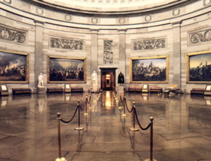 When the public was first permitted in the Rotunda in 1824, the first things that you saw when you entered, were the massive oil paintings along the inside wall. Each painting is 14 feet by 20 feet and depicts an important event in American History.