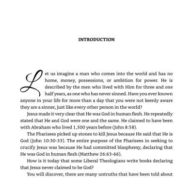 This book is written in response to Liberal Theologians who attempt to prove that the writers of the New Testament made Jesus God, while He never claimed to be God.