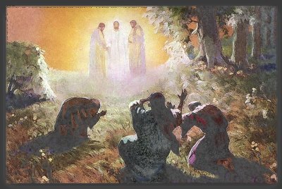 Matthew 16:28 –Matthew 17:1-9 And I tell you the truth, some standing here right now will not die before they see the Son of Man coming in his Kingdom.” Six days later Jesus took Peter and the two brothers, James and John, and led them up a high mountain to be alone. As the men watched, Jesus’ appearance was transformed so that his face shone like the sun, and his clothes became as white as light. Suddenly, Moses and Elijah appeared and began talking with Jesus. Peter exclaimed, “Lord, it’s wonderful for us to be here! If you want, I’ll make three shelters as memorials—one for you, one for Moses, and one for Elijah.” But even as he spoke, a bright cloud overshadowed them, and a voice from the cloud said, “This is my dearly loved Son, who brings me great joy. Listen to him.” The disciples were terrified and fell face down on the ground. Then Jesus came over and touched them. “Get up,” he said. “Don’t be afraid.” And when they looked up, Moses and Elijah were gone, and they saw only Jesus. As they went back down the mountain, Jesus commanded them, “Don’t tell anyone what you have seen until the Son of Man has been raised from the dead.”
