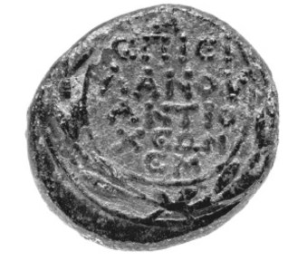 [D] 1. A bronze coin dated from Antioch, the year 1 of Tiberius reign and year 45 of Actium. The head of Tiberius is on the reverse side. From this double-dated coin we know that Tiberius started to reign in AD 14.