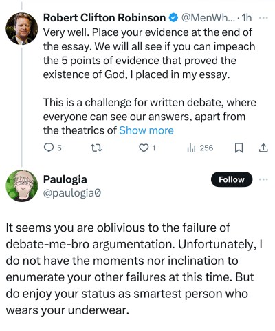 June 26, 2024***See The Update At The End of this Essay: paulogia refuses to debate the evidence that proves God exists***