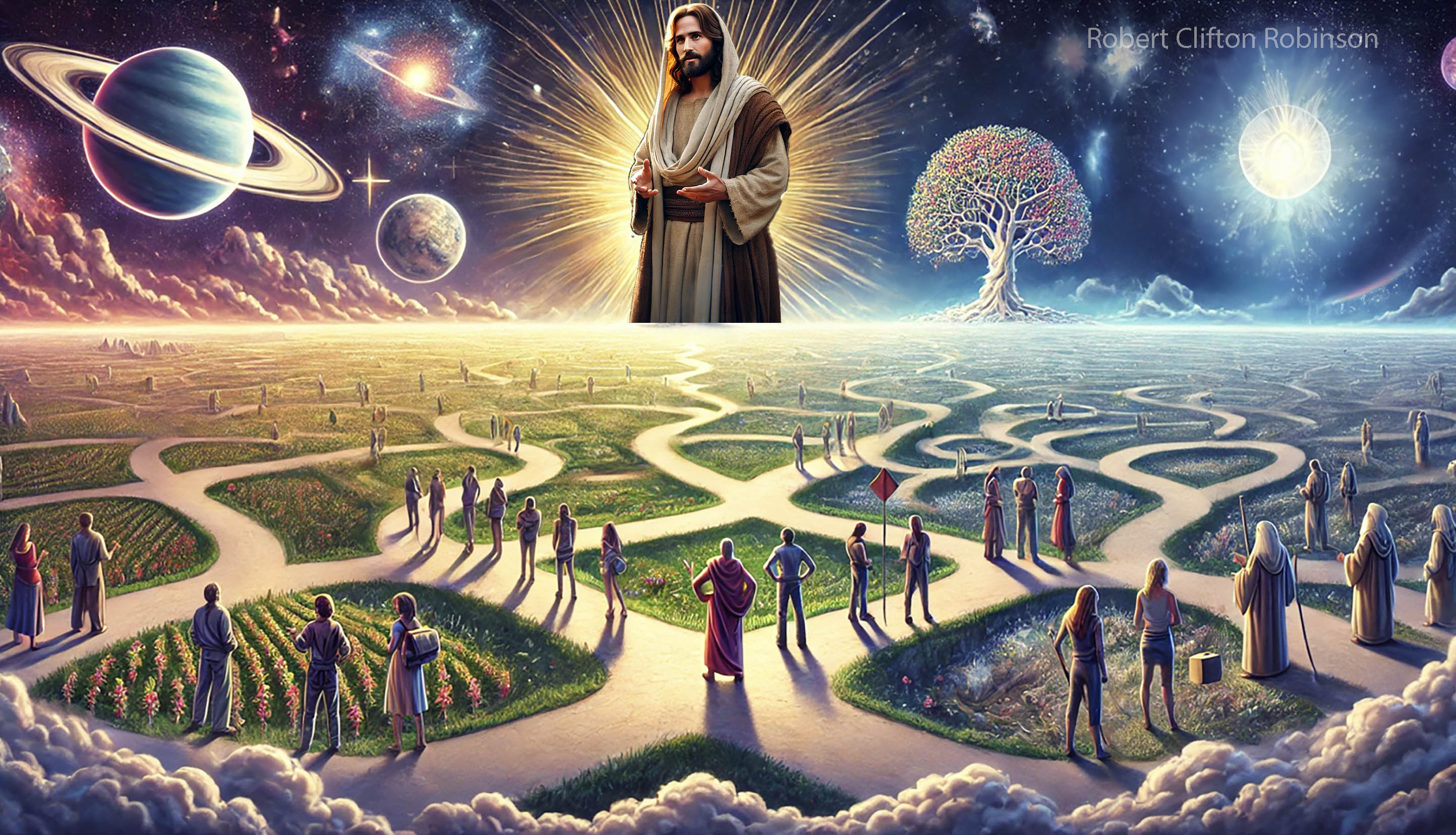 The above image visually represent how God sees all possible futures while allowing individuals to freely choose their own paths