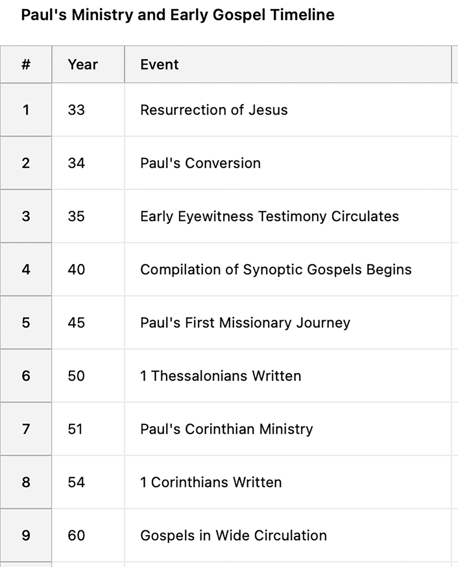 Written accounts based on eyewitness memory existed prior to or alongside Paul’s earliest missionary work. These accounts had to be available before or by A.D. 44-45, to provide the “Gospel” content Paul preaches.