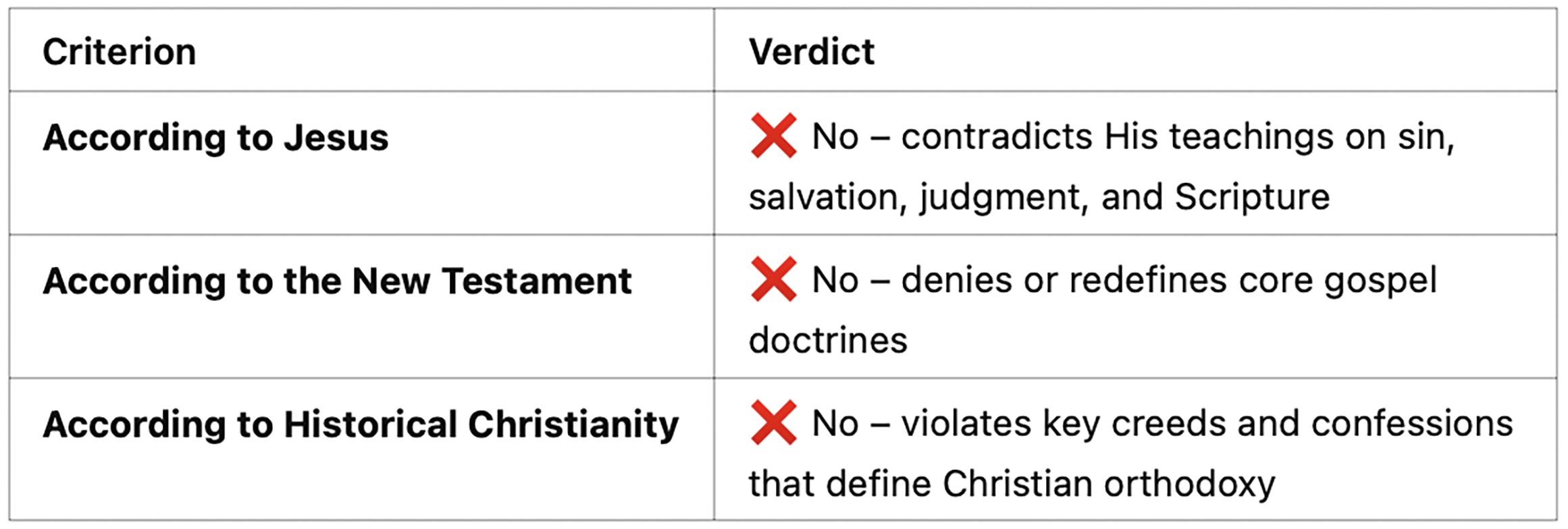 • Brian McLaren, A New Kind of Christianity (2010): Rejects substitutionary atonement, critiques biblical literalism, affirms inclusivity.