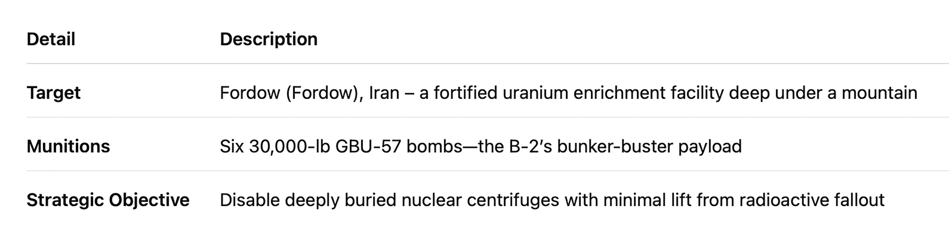 • The strike likely destroyed a portion of Iran’s underground uranium enrichment infrastructure.