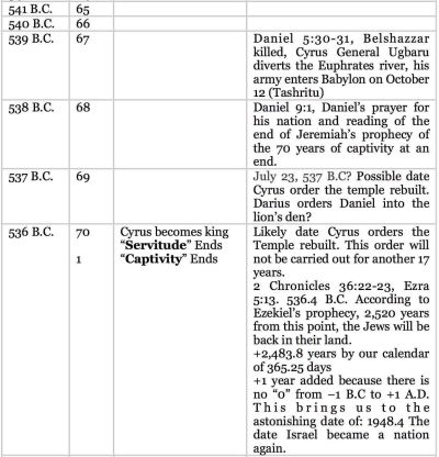 According to history, the “captivity” and the “servitude’ of Israel both ended in the spring of 536 B.C. (2,483 years and 4 months)