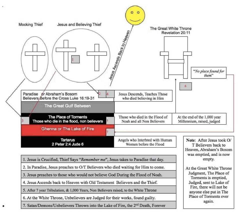 Also interesting is the fact that when Jesus departed into the lower parts of the earth, there was a second chamber called Abraham’s Bosom. Luke Chapter 16 describes this location as a place of rest for all believers who died believing in God’s future salvation—through His Messiah. After Jesus completed His sacrifice for our sins and was raised from the dead, He closed Abraham’s Bosom, and took with Him, all those souls who had died previously, and were waiting for the atoning sacrifice of the Messiah.